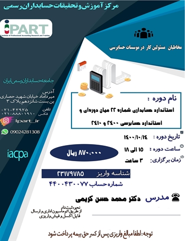 کارگاه آموزشی آنلاین استاندارد حسابداری شماره 22 میان دوره ای و استاندارد حسابرسی 2400 و 2410