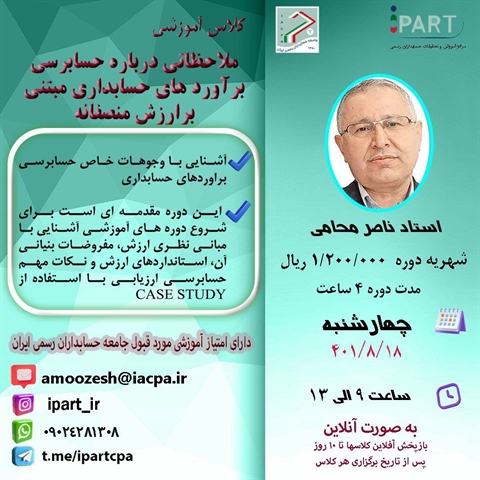 • کلاس آموزشی آنلاین ملاحظاتی درباره حسابرسی و برآورد های حسابداری مبتنی بر ارزش منصفانه