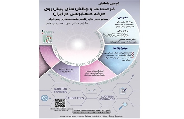 🔹مركز آموزش و تحقيقات حسابداران رسمى به مناسبت بيست و دومين سالروز تاسیس جامعه حسابداران رسمی ایران اقدام به برگزاری دومین همایش " فرصتها و چالشهاى پيش روى حرفه حسابرسى در ايران" روز چهارشنبه اول شهريور ساعت ١٤ الى ١٩ در مركز همايش هاى بين المللى هتل بزرگ ارم واقع در تهران، میدان ونک، بزرگراه شهید حقانی، بعد از کتابخانه ملی، جنب روگذر شهید همت غرب، هتل بزرگ ارم می نماید که این نشست در سه پنل تخصصى به صورت مجازى و حضورى با اعطاى گواهينامه معتبر و امتياز آموزشى مورد قبول جامعه حسابداران رسمى ايران برگزار می شود.