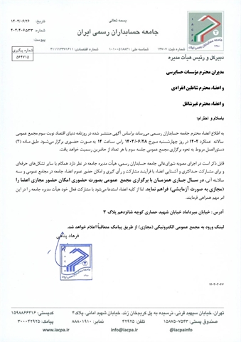 • دعوت به مجمع عمومی سالانه نوبت سوم جامعه حسابداران رسمی ایران